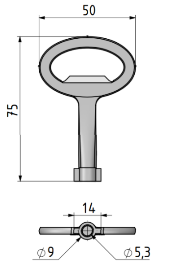 Znalowy klucz do skrzynek gazowych, o końcówce dwuskrzydłowej ⌀5mm.