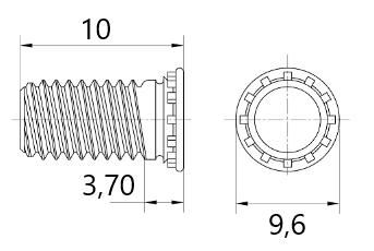 Wykonany ze stali nierdzewnej wciskany kołek z gwintem M8 i długości gwintu 10mm. Kołki sprzedawane w komplecie po 10szt.