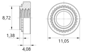 Nakrętki wykonane ze stali nierdzewnej z gwintem wewnętrznym M6. Podczas montażu nakrętek wciskanych zaleca się stosować do umieszczonych w tabelce twardości blach.