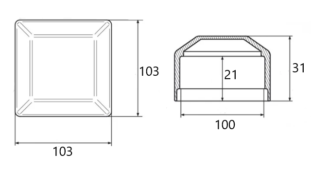 Zestaw 20 sztuk czarnej, odpornej na mróz i promienie UV , polietylenowej nasadki zewnętrznej  o wymiarach 100x100mm.