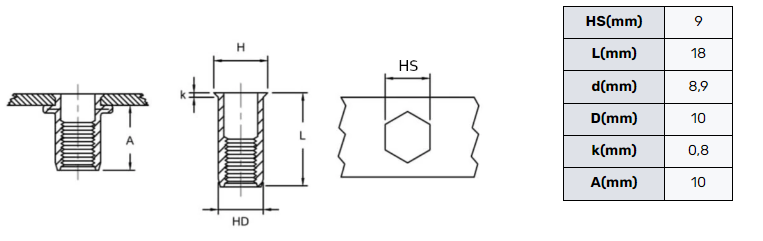 | Kształt nitonakrętki | Sześciokątna |