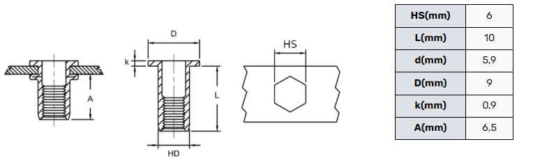 | Kształt nitonakrętki | Sześciokątna |