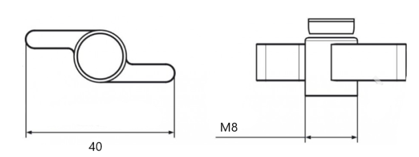 Pokrętło składane wykonane z tworzywa sztucznego Poliamidu zakończone otworem o średnicy 8mm . Średnica uchwytu wynosi 40 mm.