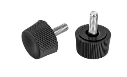 Pokrętło radełkowane z trzpieniem gwintowanym służy do regulowania, a także do ręcznego mocowania i zaciskania elementów urządzeń i mebli.
