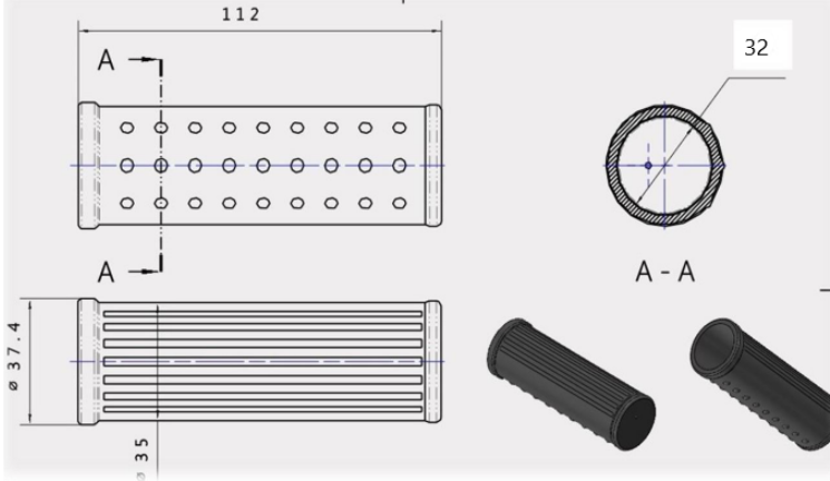 Rączka do taczek i wózków , średnica 32 mm, wykonana z tworzywa sztucznego , polietylenu.