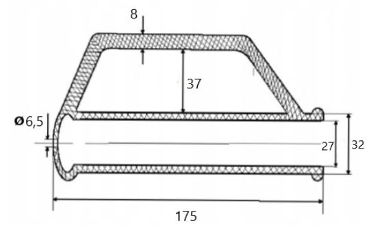 Rączka wózka z osłoną Fi 27 czerwona, wykonana z tworzywa sztucznego, polietylenu.