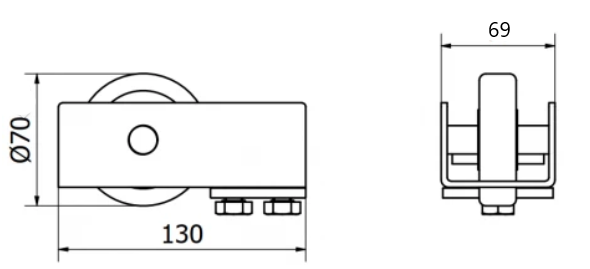 Wykonana ze stali ocynkowanej galwanicznie rolka najazdu do profilu  80x80mm.
