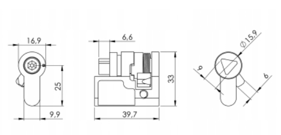 Wkładka patentowa do rozdzielni energetycznych . Wykonana z chromowanego znalu do zamka z mechanizmem dźwigniowym , zamykana na klucz trójkątny 9mm.
