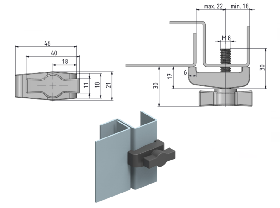 Poliamidowy zacisk mostkowy, ze stalową, ocynkowaną śrubą o gwincie M8.